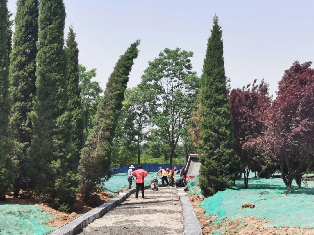 新村路与上海路交叉路口西侧的游园小路初现雏形