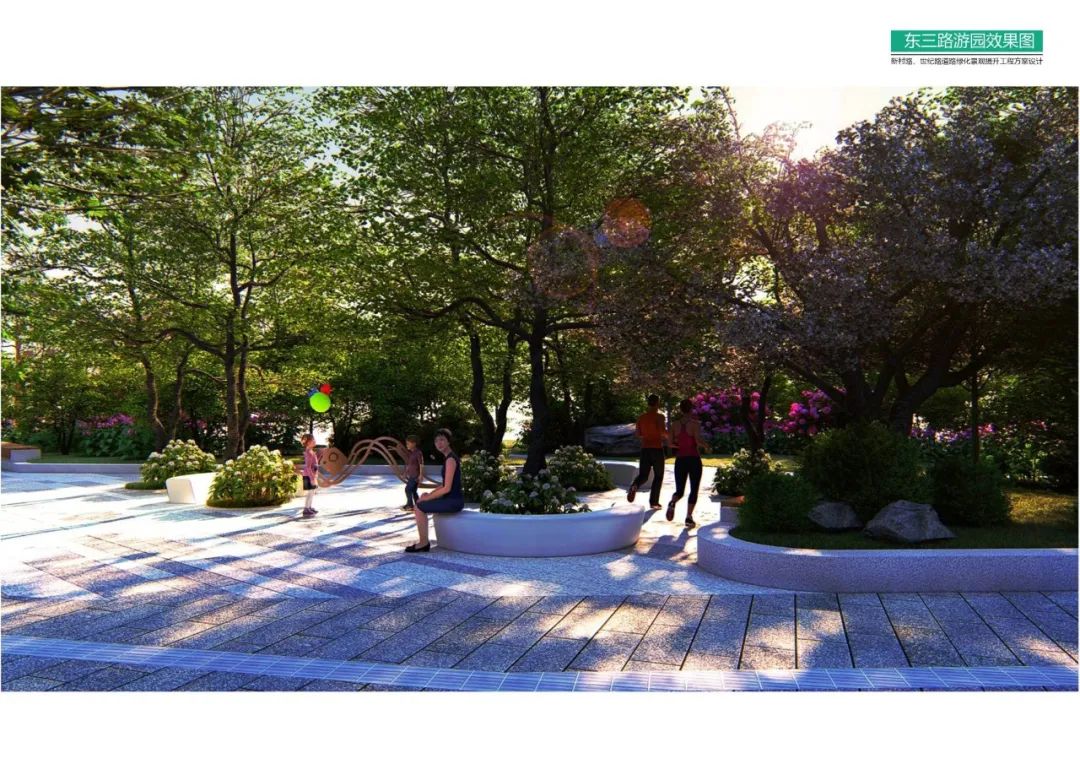 新村路、世纪路道路绿化景观提升改造后效果图