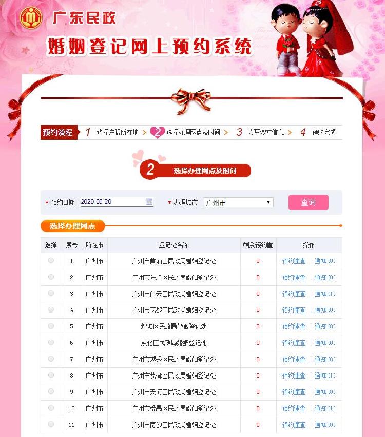 广州“520”婚姻登记预约已满。来源:广东省民政厅官网