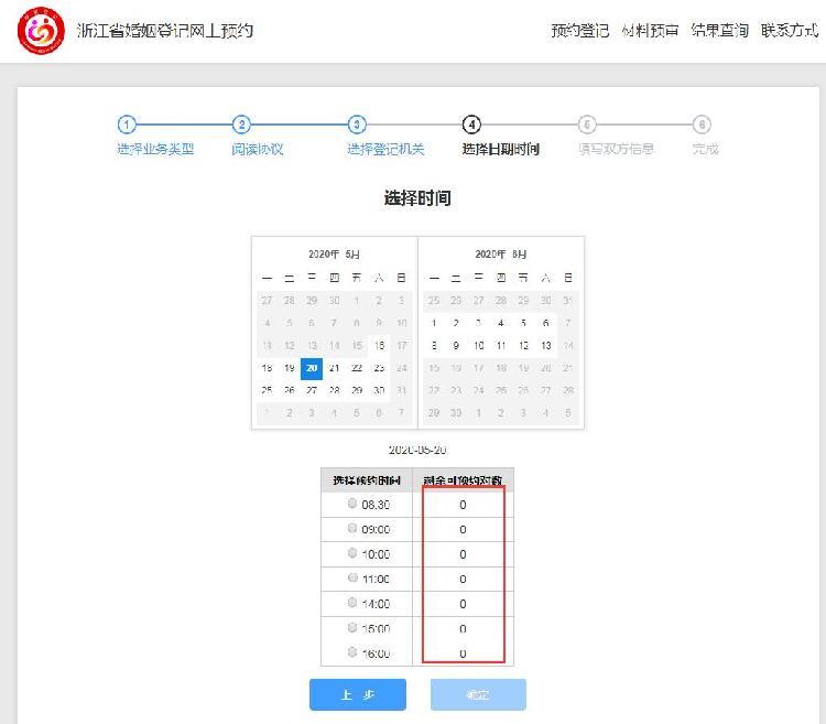 杭州“520”婚姻登记预约已满。来源:浙江省婚姻登记网上预约系统