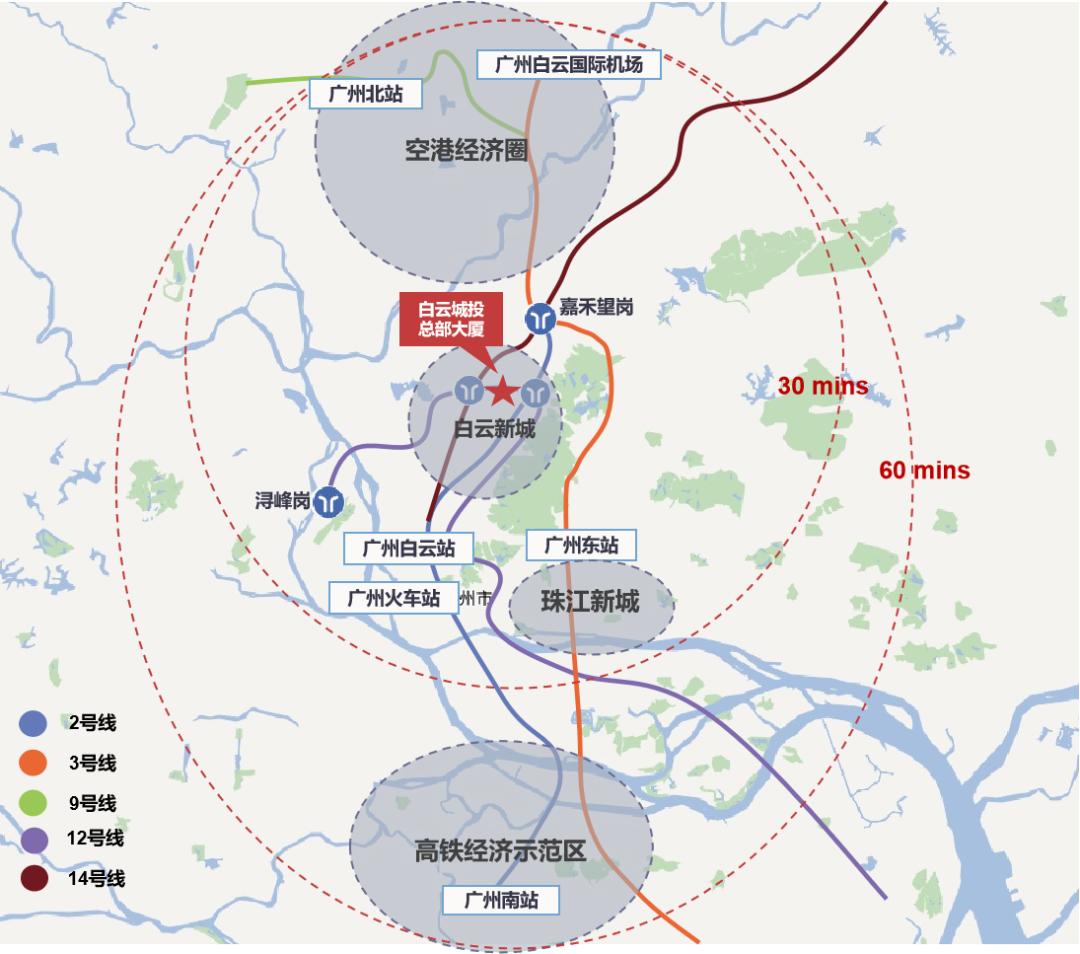 坐落于白云新城CBD核心地段的白云城投总部大厦,与珠江新城相距仅12公里,项目位处齐富路地段,一公里半径内有多个公交与地铁站点。