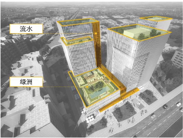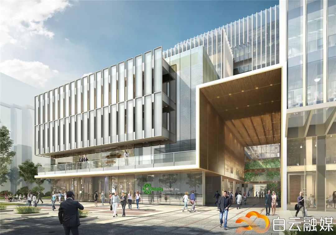 白云城投总部大厦规划高端企业办公空间及创新商业公共服务配套,提供多样化的办公产品,满足企业全生命周期发展需求,促进办公人群、商业人群交流沟通,打造绿色生态园区,让商务回归人本主义。