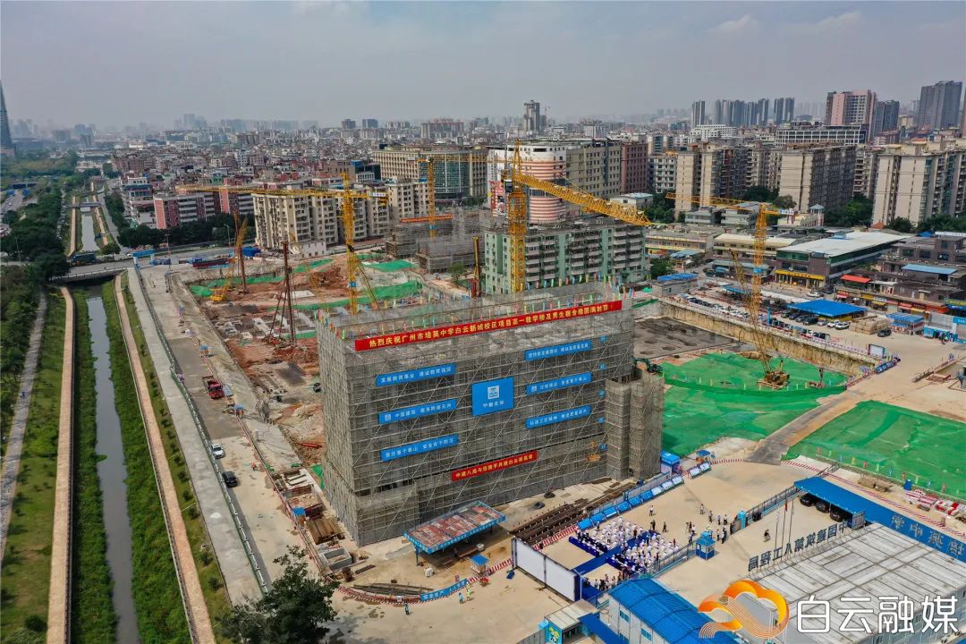 培英中学白云新城校区项目用地面积约9.9万平方米,总建筑面积约9.5万平方米,拟于明年春季建成投入使用。日前,该项目高一教学楼及男生宿舍楼已经封顶。