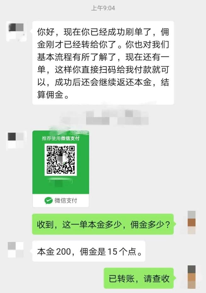 让“鸟”再拍第二单,价格一般在200左右,一般是让“鸟”直接扫码付款,或者通过在微信群发红包的形式付款。杀“鸟”手以返款需要时间为理由,诱骗“鸟”继续接单。