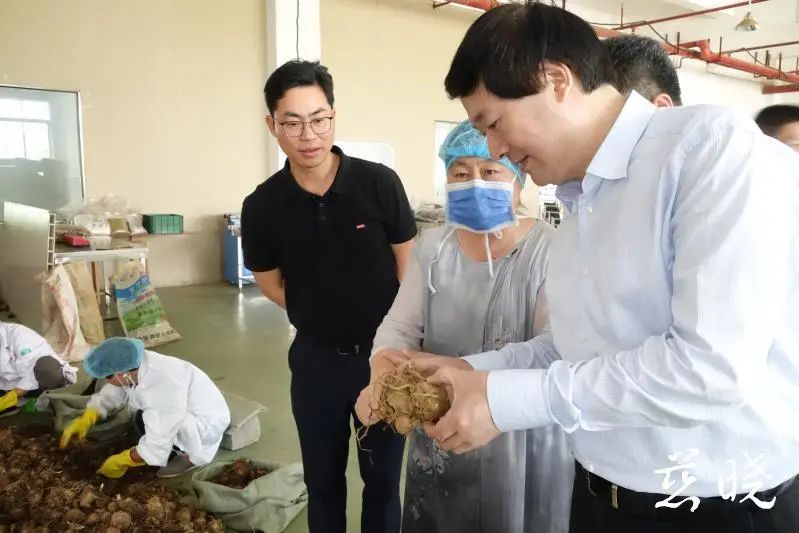 在兴仁市,高庆丰一行首先考察薏品田园农工厂项目,该项目是慈溪和兴仁东西部扶贫协作的产业帮扶项目。高庆丰下田头察看农产品情况,询问易地扶贫搬迁困难户生活状况和在帮扶项目的就业薪酬,详细了解群众在项目中的受益方式。