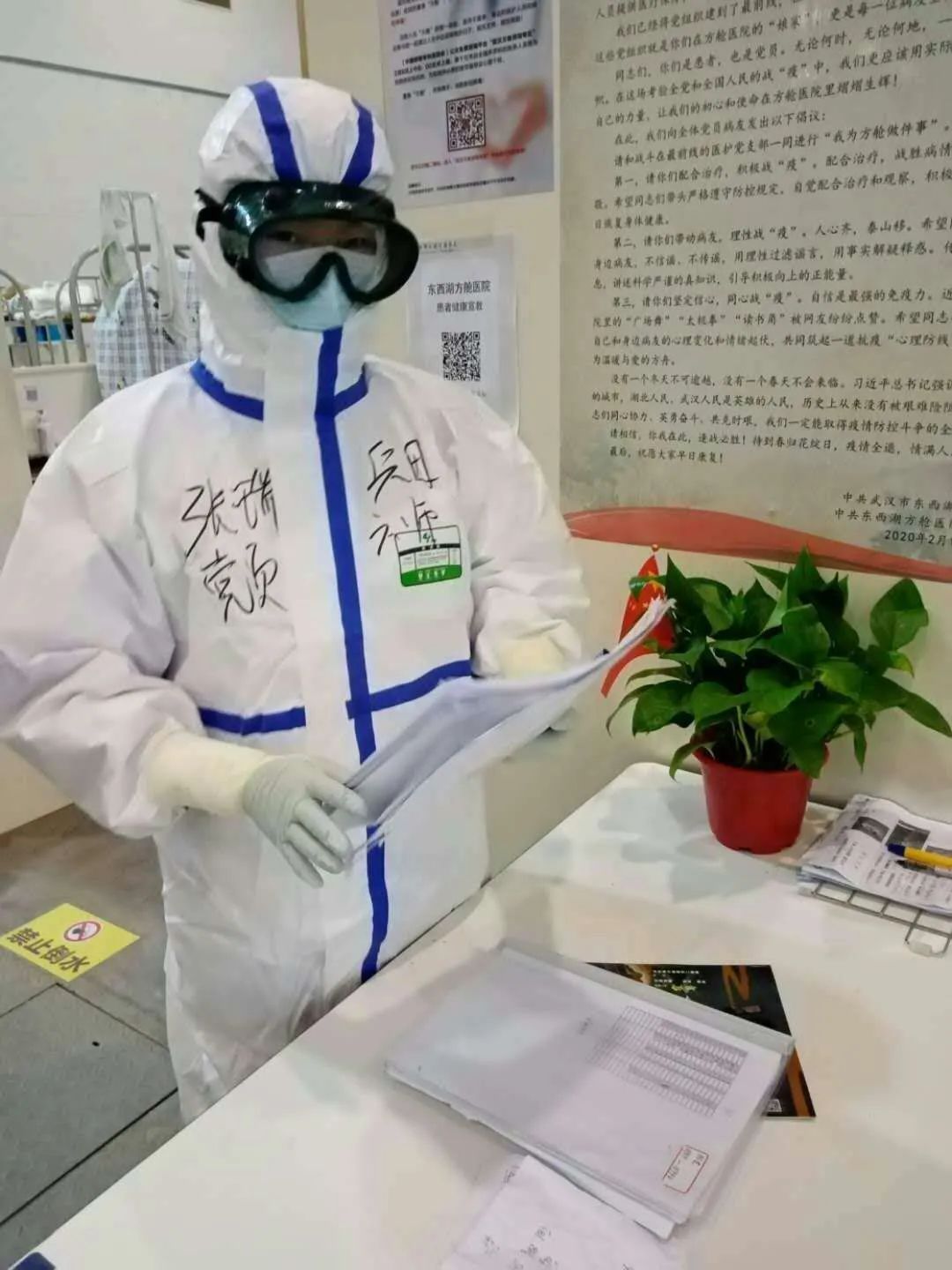 初到武汉,国家紧急医学救援队兵团领队刘峰安排周新华担任护理部副主任,不用进舱,只在外围做行政工作。周新华一听急了:“刘书记,我可以保证做好外围工作,但是请您一定要让我进舱接管患者,我有工作经验,保证里外兼顾,请让我到最前线去!”就这样,周新华每天都要进舱,负责医院C厅B区的管理。负责后勤管理、122名护士排班、物资调配、穿脱防护服培训指导检查、患者情绪安抚等工作。出了舱,晚上加班做表、制定制度、反馈问题、整改落实……每天能睡5个小时,她觉得已经是很幸福了。周新华为了安抚患者情绪,她带领护理人员把饭送到患者床头。看到舱内的读书角没有任何装饰,周新华便通过社会志愿者拿来了11箱绿萝,搬进舱里摆放在患者的床头。星星点点的绿色,在方舱内蔓延、生长,带来了希望。