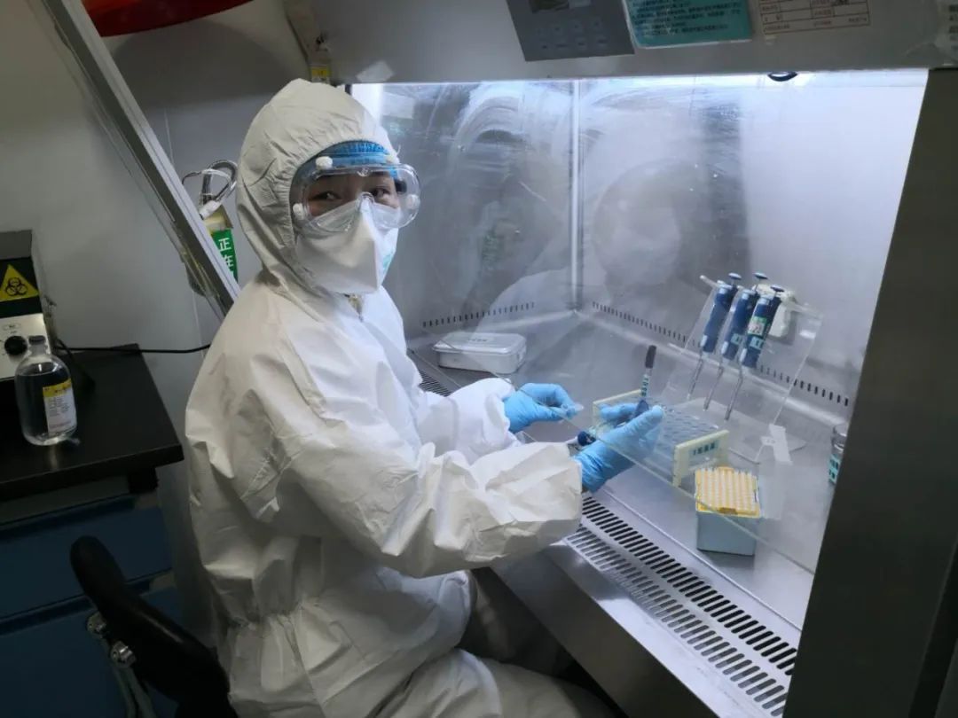 在这分别的一个多月里,两个人唯一的沟通就是微信视频。当家人得知她要穿上防护服,进入实验室进行新冠病毒的核酸检测工作,既担心又支持。老公时常嘱咐她“你们是离病毒最近的人,一定要做好防护,注意安全!”。她总是笑笑“有你和女儿做我的后盾,我不怕”。为了减少防护服的浪费,检测期间她几乎不进食、不喝水,不上卫生间,一直坚持到实验完成。防护服密不透气,实验时间又长,每轮实验下来,防护服里浸满了汗水,口罩磨破了脸颊,但她顾不上那么多。每次看到她的脸庞丈夫总是心疼的说,疼吗?在视频中,他们彼此鼓励着,安慰着,支撑着,把爱的温情融入一句句温馨话语中。