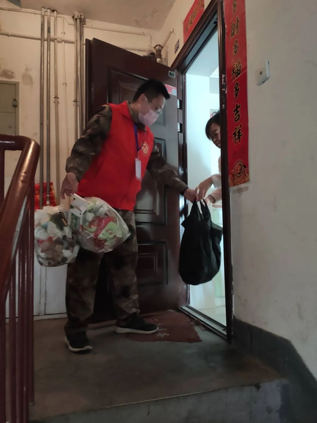 妻子尹婵是一六一团核算中心的工作人员,在师里开展决算工作直到年三十才回到团场,又义无反顾地加入到社区疫情防控工作中,承担着入户、监管服务保障和宣传疏导的任务。她要解决承包楼栋居民家中的大小困难、操心着一些“鸡毛蒜皮”的“小事儿”,特别是生活保障物资采购和运送,总是忙到深夜才回家,每天她的手心里都会多几道“提袋子”的勒痕,为了省时间,有时候三两分钟泡一包方便面,匆匆解决吃饭问题。
