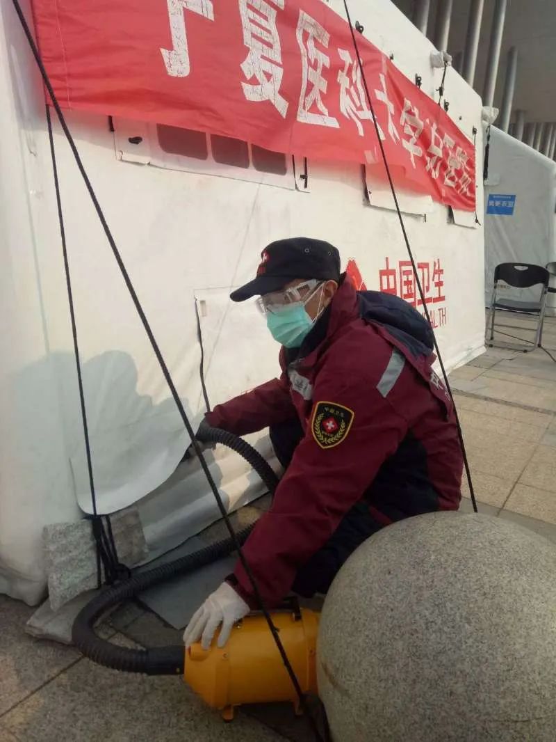 当天晚上后勤保障的31名队员匆匆吃过晚饭,随即踏上了奔赴武汉的征程,一路上为了尽早到达湖北疫情区,克服一切困难,长途跋涉昼夜兼程,携带救援物资,历经约3500公里于2月7日中午2点半到达武汉市,随后车队到达东西湖方舱医院指定地点,开始搭建帐篷,搬送物资。通过一夜休整,第二天就投入到紧张的工作之中。