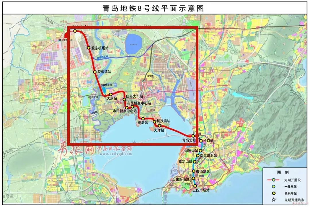8号线北段也将于今年通车。所涉站点为胶州北站-胶东机场站-胶东镇站-大涧站-红岛火车站-市民健康中心站-市民健身中心站-观涛站-科技馆站-大洋站-青岛北站 。