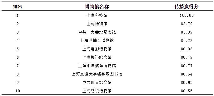 一、上海市博物馆社会影响力前50名