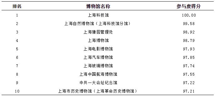 夏雨分析,前10名的博物馆有以下特点:1.上海科技馆具有广泛的吸引力。它全年参观人数超过400万;在大众点评、美团等网络评价平台上共有近9万条游客评价;参观者都愿意在科技馆打卡,分享在科技馆的所见所闻,在传播度、参与度与融合度上均排名第1位。