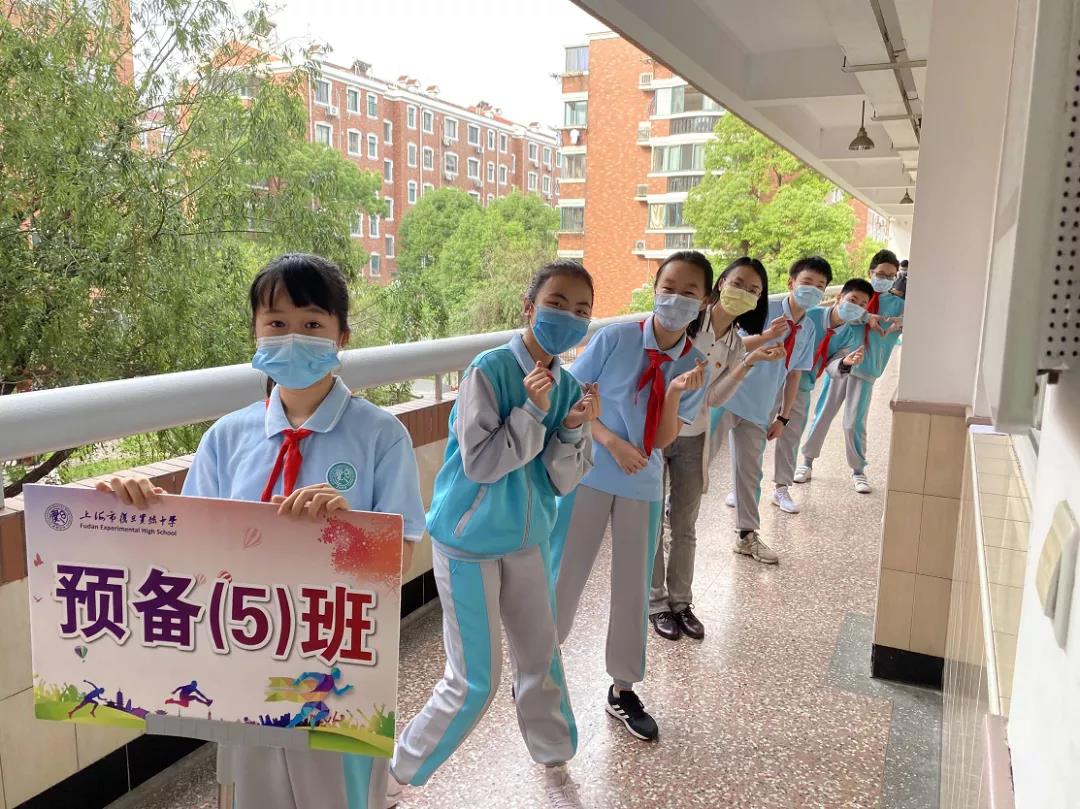 预备五班的师生“小别重逢”,快乐比心(复旦实验中学)