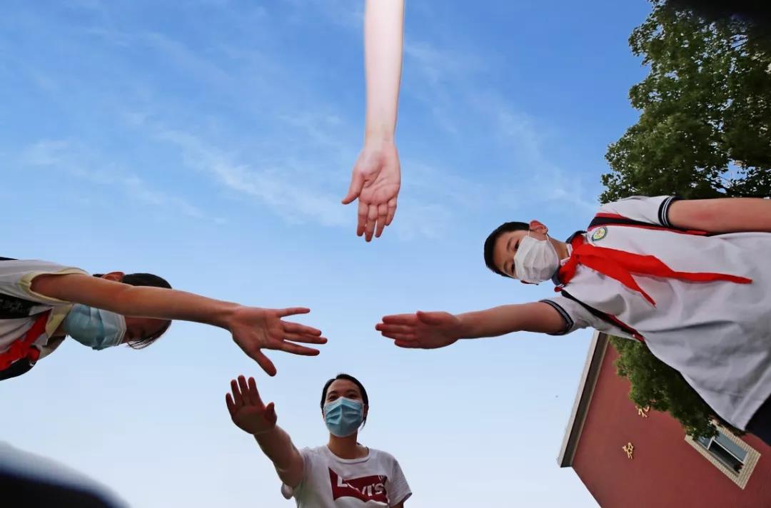 同学们回到了亲切又熟悉的校园,见到自己的同学、朋友和老师们,他们脸上的喜悦和兴奋就算隔着口罩也能感受得到。老师、同学们纷纷拿起手机和相机,留下这一瞬间:“嘿,我们开学啦!”
