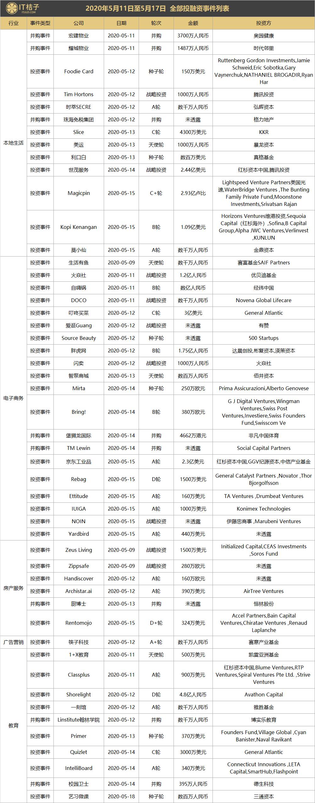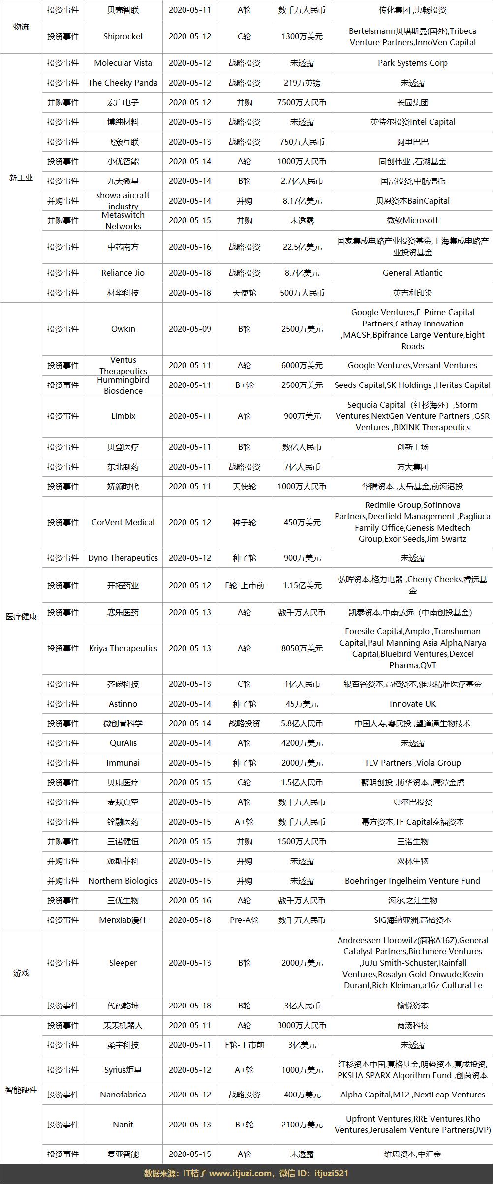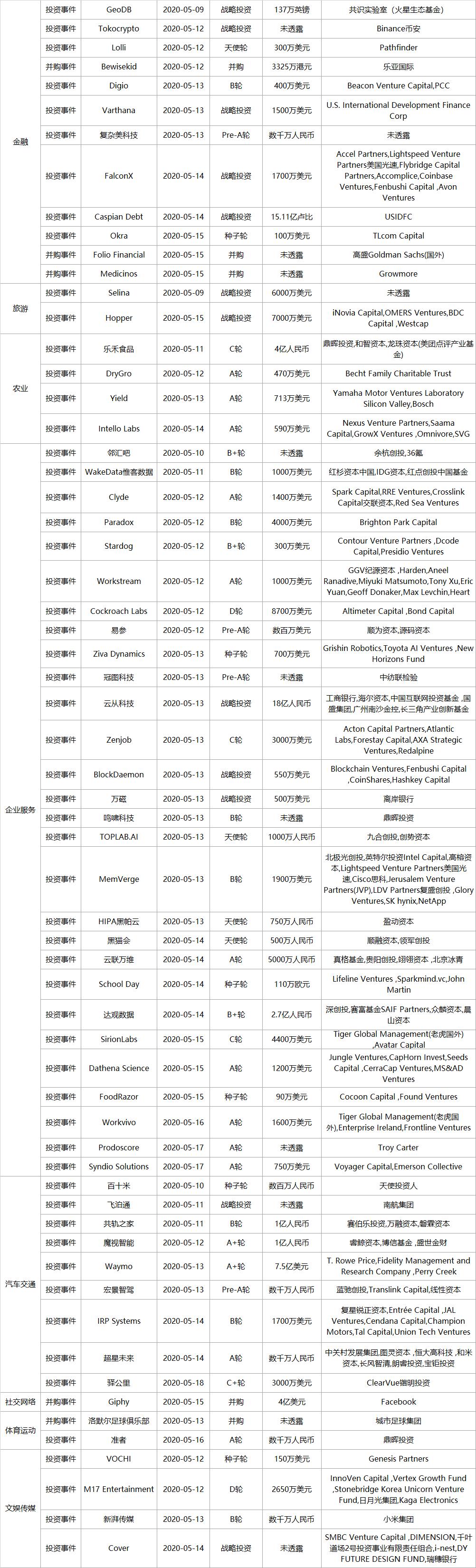 上周全部投融资事件列表:
