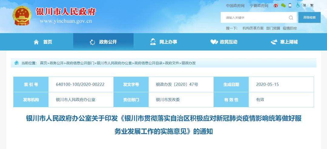 《银川市贯彻落实自治区积极应对新冠肺炎疫情影响统筹做好服务业发展工作的实施意见》的通知