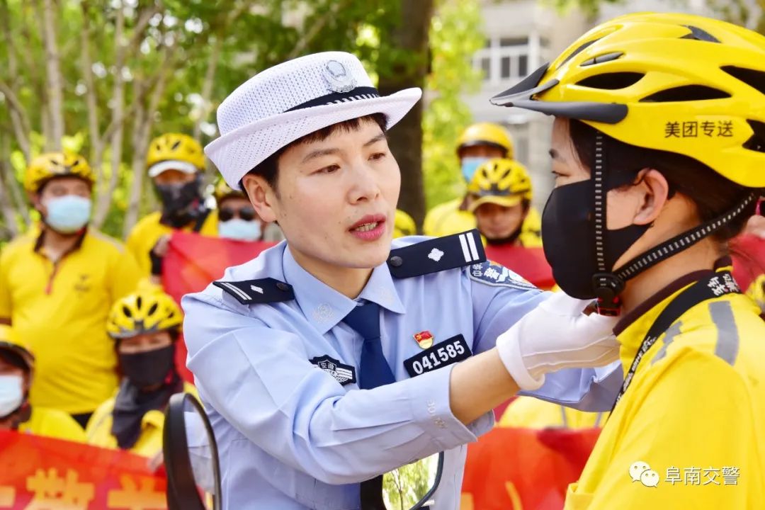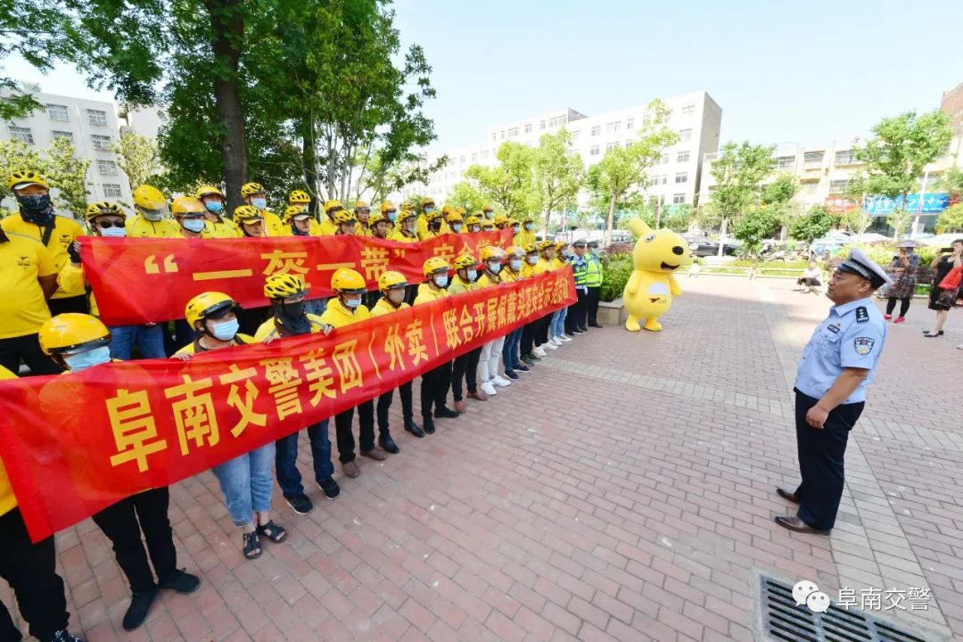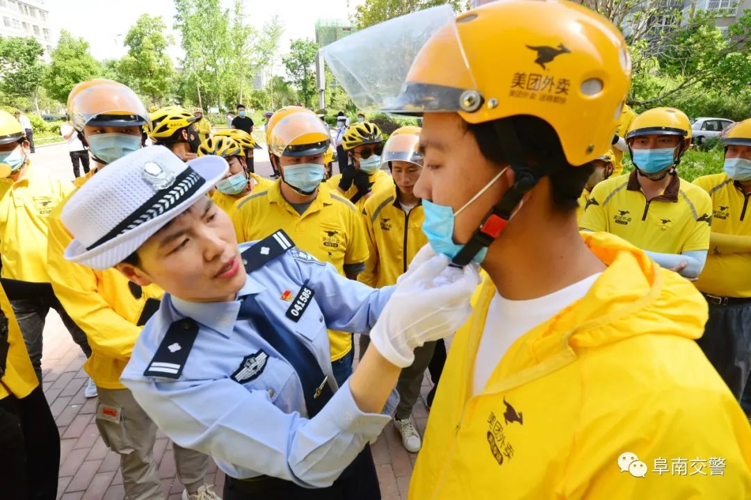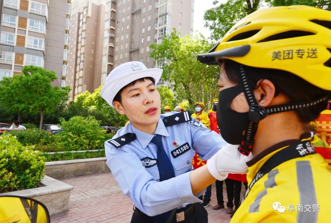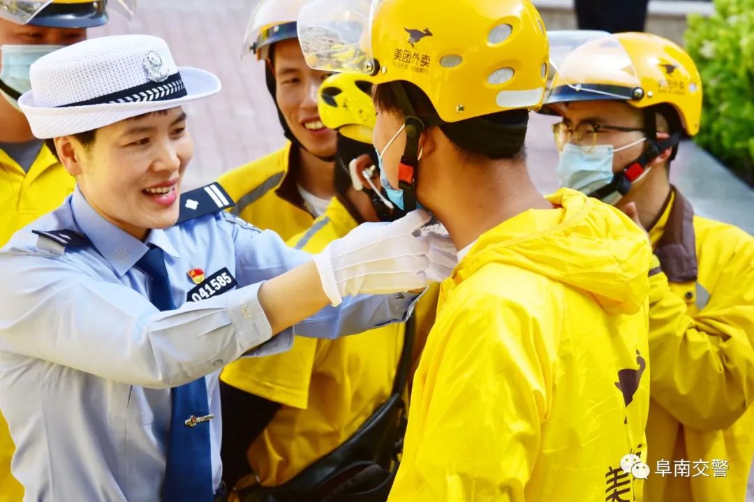 原标题:《阜南交警联合美团外卖开展“一盔一带”宣传活动》