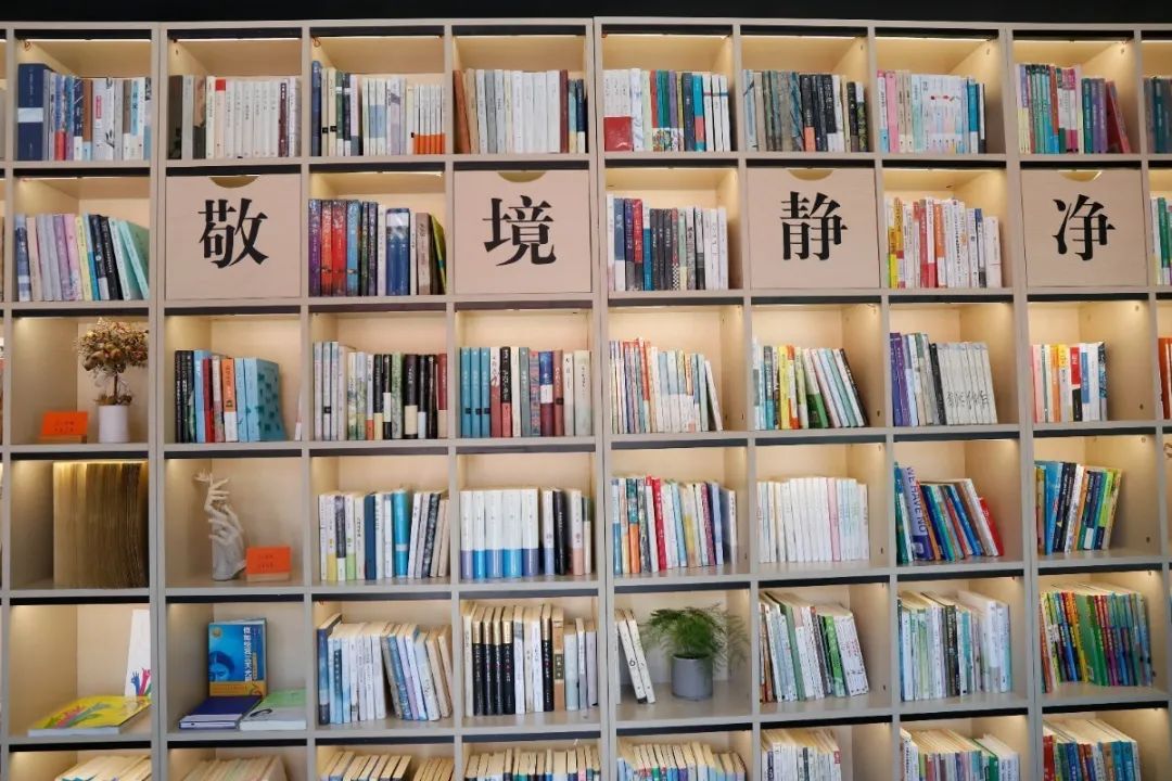 木质书架上摆满了书籍