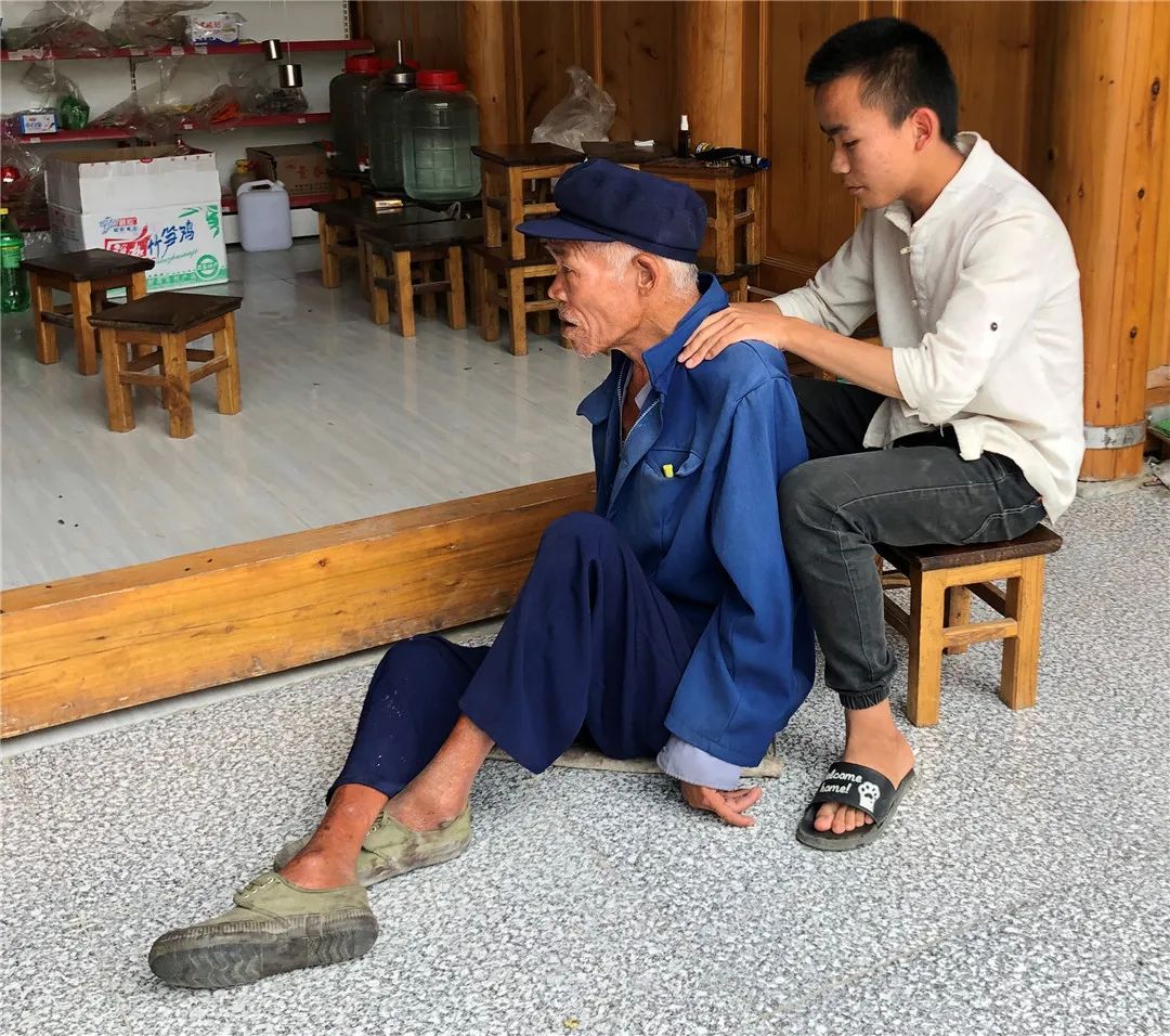 廊沿上躺着一位老汉,见客人进来,艰难地挣扎着撑起上身来,笑呵呵地和客人们打招呼、聊家常。这是周绍山的父亲,今年68岁,33岁那年因患病下肢瘫痪,至今已35年了。