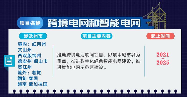 2月23日,在云南新冠肺炎疫情防控工作第十五场新闻发布会上,提出将投资约3.6万亿元全面推进实施基础设施“双十”重大工程。其中,总投资600亿元建设跨境电网和智能电网,推动跨境电力联网项目和推进数字化绿色智能电网建设。