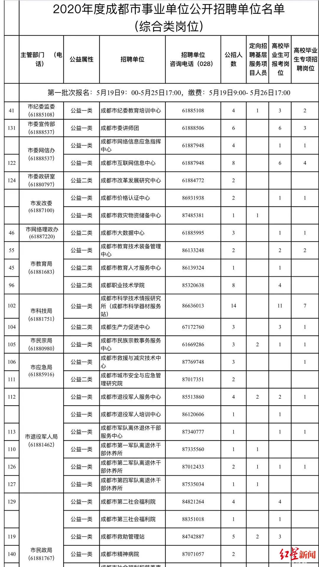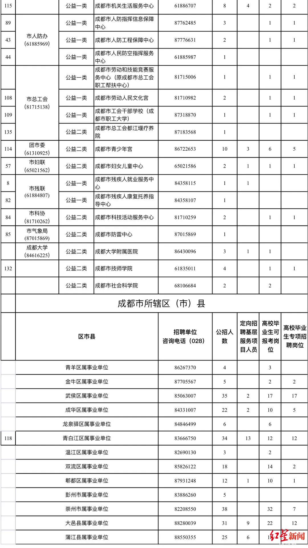 此外,接下来成都还将陆续推出一系列事业单位专业技术岗位。