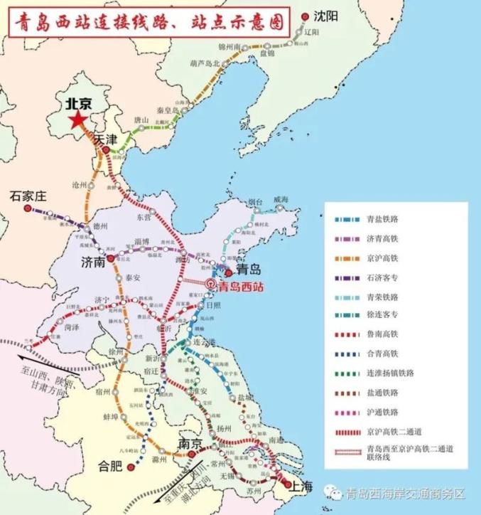 目前,青岛西站已开通到达北京、上海、杭州、重庆、成都等主要大中城市列车72列,年内还将开工建设青岛西至京沪高铁二通道联络线,推动青日客专列入上位规划。同时,途经青岛西站的地铁6号线二期工程也计划与一期工程同步开通运营,青岛西站配套交通日臻完善。