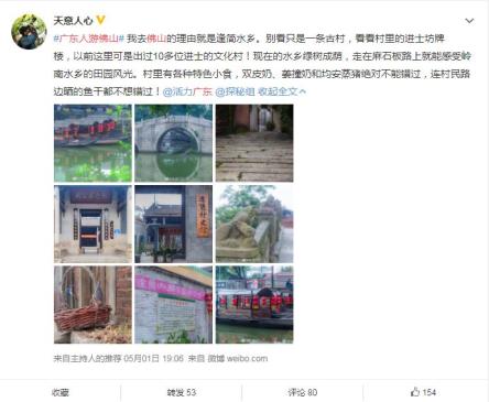 此外,佛山市文化广电旅游体育局还联合佛山市旅行社协会和南方卫视向社会大众发出了“我要去佛山”的理由征集令,把佛山众多网红旅游打卡点推介给更多市民和网友,并评选出前10位推广胜出者成为此次的“佛山网络推广大使”,让他们带领网友们继续深度体验精彩佛山之旅。