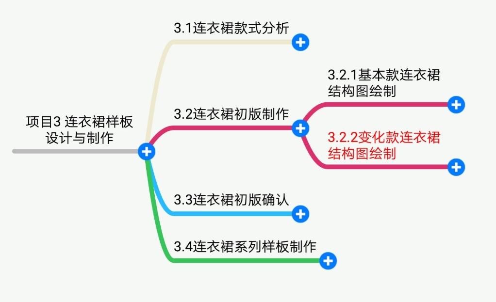 下面以“变化款连衣裙结构制图”项目为例,展示典型授课案例