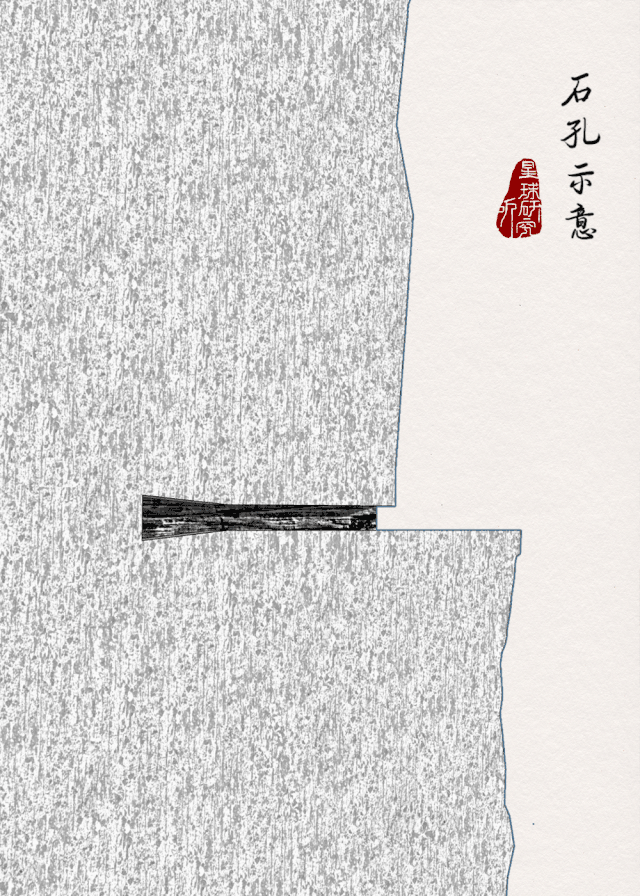 横梁打得越深,在木头楔子的作用下,楔子与横梁咬合的越紧,横梁就能够牢牢地卡在石壁上。