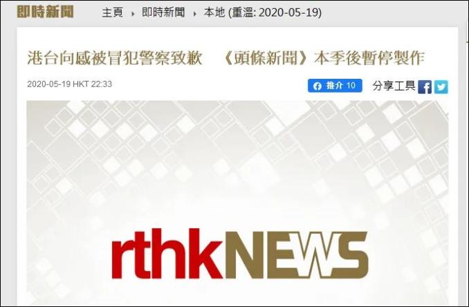 香港电台19日晚表示,接受有关裁决并严肃跟进,向因连串事件引发的不满及感到被冒犯的警察道歉,同时,下架涉事集数,并在本季《头条新闻》播出后暂停制作。