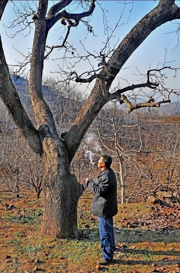 张学东舍不得这片山林,三十多年,他的人生成天围着这些树转,剪枝、打药、描肥、套袋、疏果,山上常常只有他一个人,但他从不觉得寂寞。71岁的他依旧每天开着自己的老伙计——一辆三蹦子上山,一年四季没有闲着的时候,累了,他就放下手里的活儿,点上一袋旱烟。