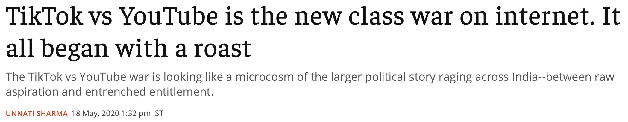 一波未平,一波又起,TikToker和YouTuber之间的"战争"一触即发。最近,在TikTok拥有几百万粉丝的创作者称"Youtuber不如TikToker,并且从TikTok盗取视频内容及创意"。5月8日, Youtube头部用户Carry Minati发视频嘲讽,结果被YouTube判定网络霸凌将该视频下降,紧接着Carry Minati的粉丝开始去应用下载商店,给TikTok打1分。5月17日,另一名YouTube头部用户也发了相关话题的视频,不到24小时播放量破700万。