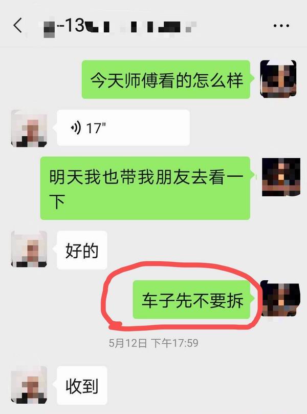 袁先生不得不开始询问“我车上零件什么时候被拆了”。对此,维修点的一位维修负责人告诉他,“他们(理想汽车工作人员)第二天(5月13日)有人来过,把你车上的这个东西拆走了。”