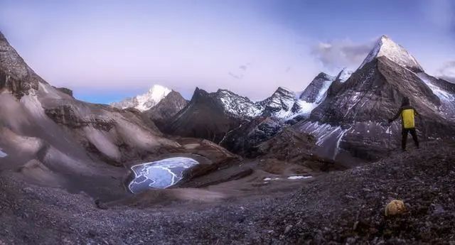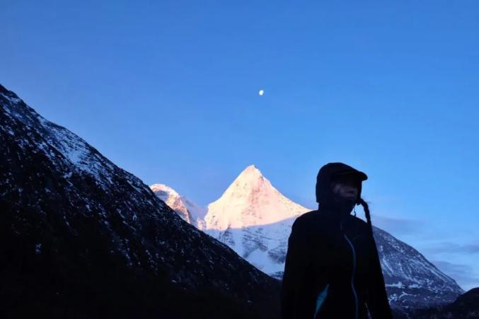 在本次采集中,摄制组破晓出发,前往洛绒牛场捕捉到了日出神韵。雪山下的牛场薄雾缭绕,明亮的月球还挂在山尖,天光透蓝,照的山石轮廓明细细致,淡粉色的天光与大山的壮丽作伴,幸喜又满怀敬畏之心。当天摄制组从洛绒牛场徒步5公里抵达牛奶海,声音采集者Xiang第一次在日出时分捕捉到了纯净大自然的生命之声。太阳、风、冰封的水流、落雪、灌木丛、蝌蚪、松鼠、短尾藏猕猴、岩羊、群鸟……他们在空气中共享与交流着彼此的声音,这是还未被你我所仔细倾听的声音,也是稻城亚丁散发出的丝丝自然之音。