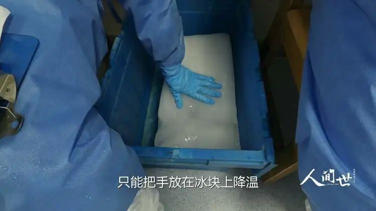 在三级防护的状态下,医护人员每天至少工作四个小时。缺氧、闷热、汗水湿透多层防护的状况时有发生。热到极点,只能把手放在冰块上降温。