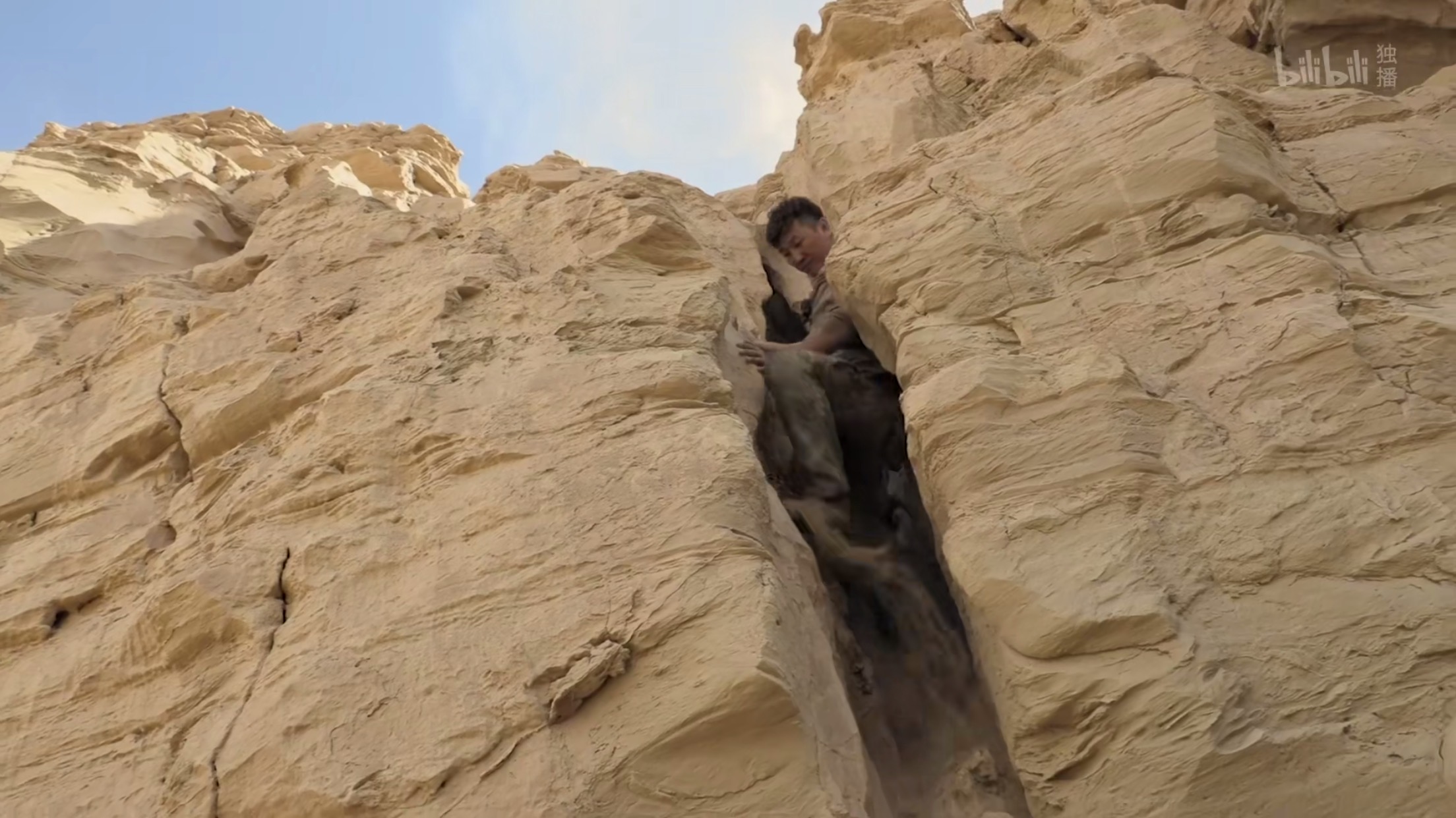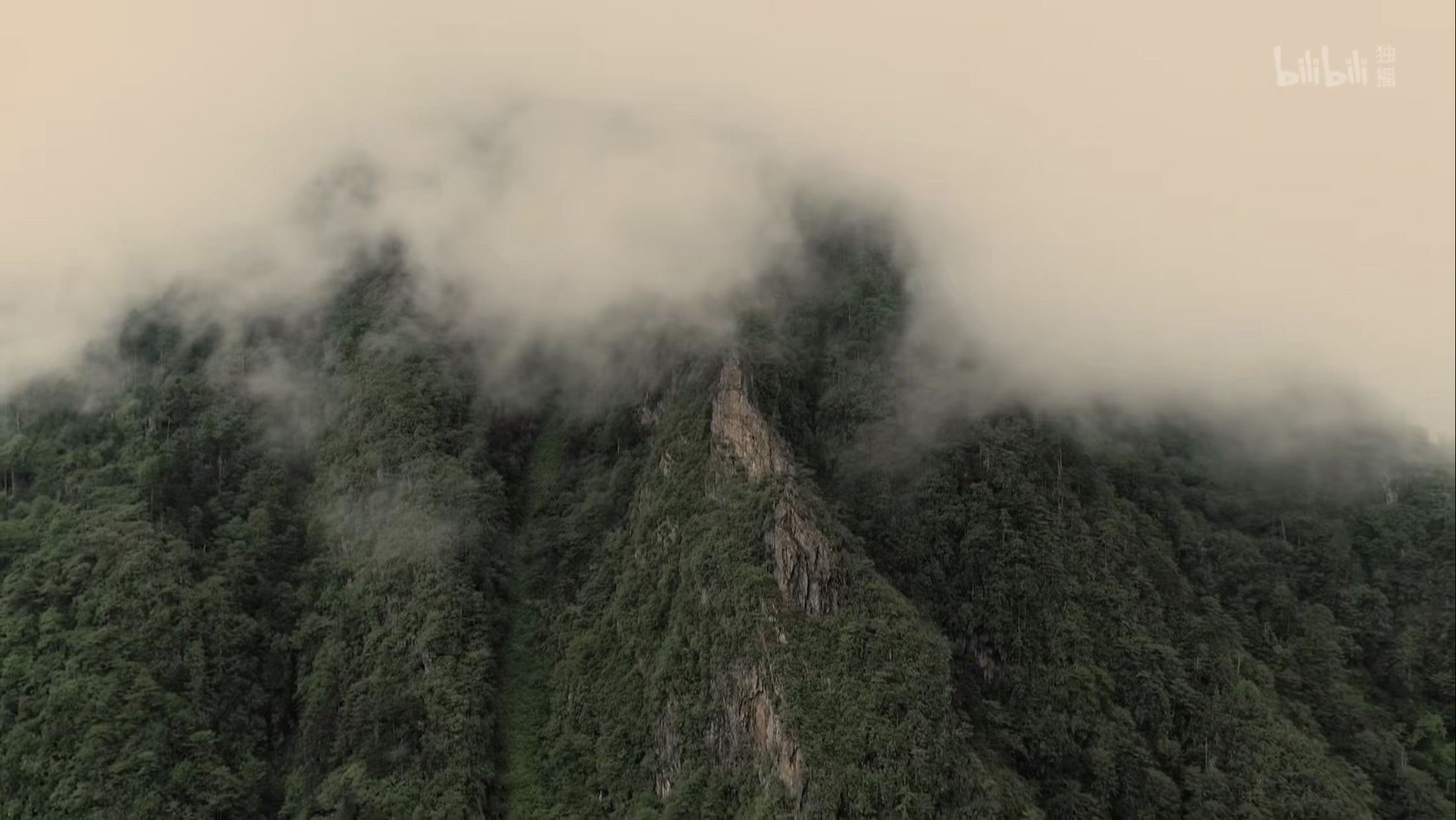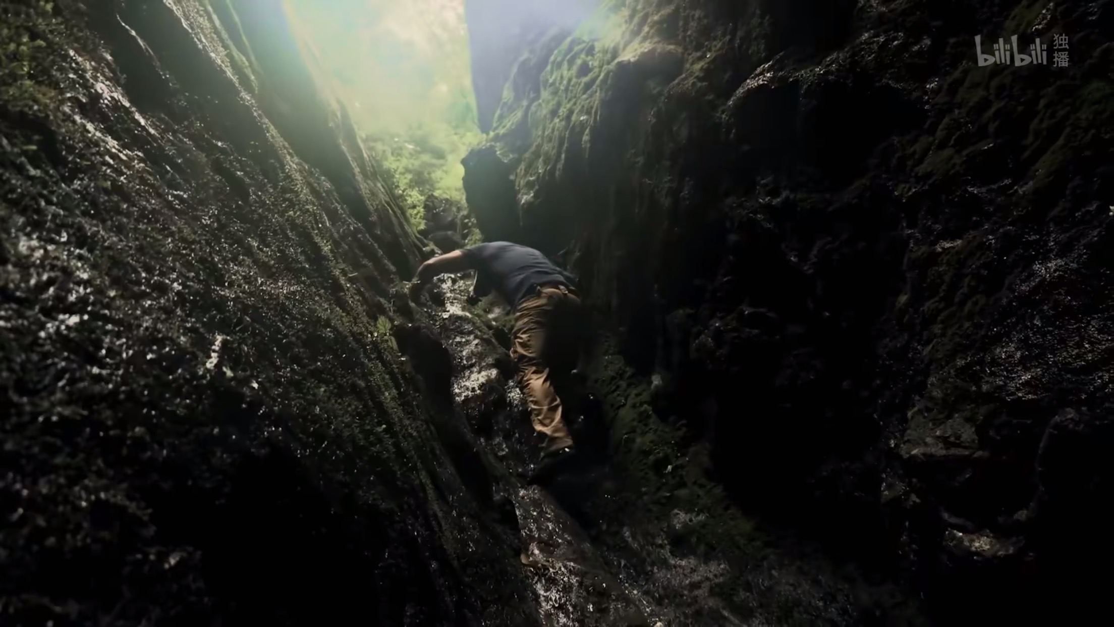 悬崖布满青苔湿滑难攀。 视频截图