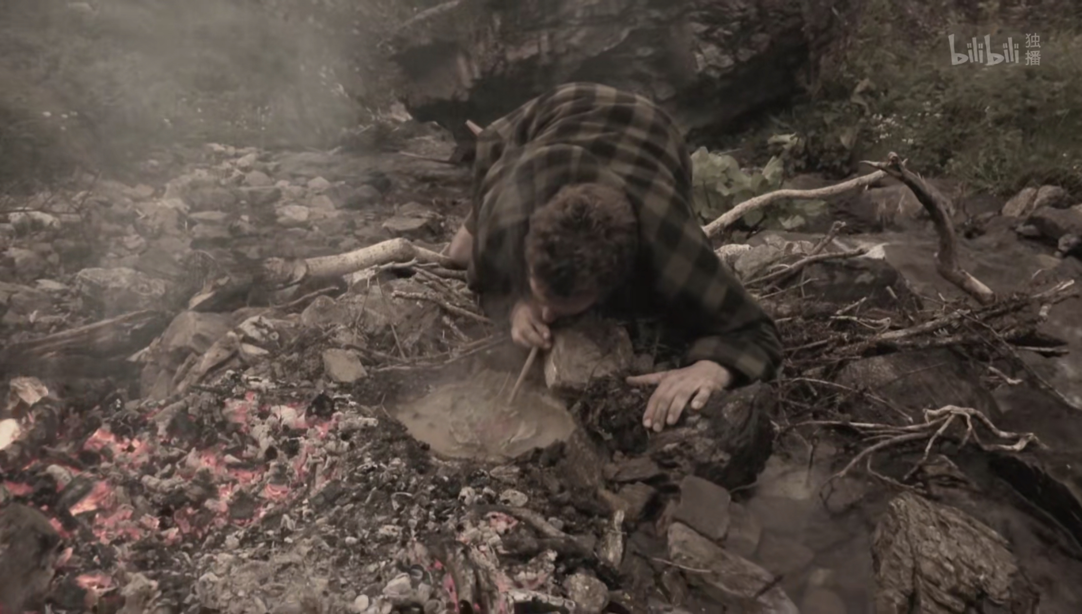 德爷与原始生存技能导师威尔·劳德(Will Lord)在陕西巴山比拼。 视频截图