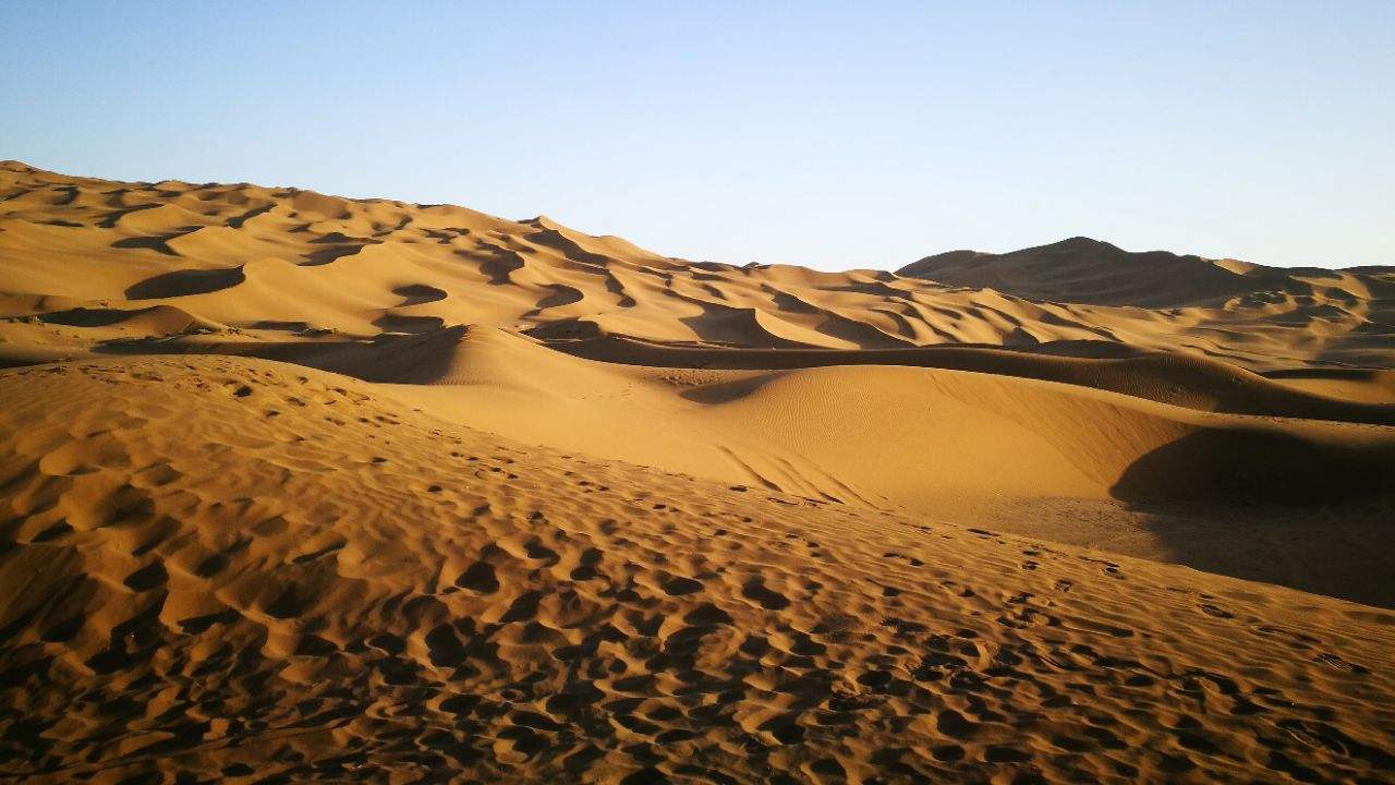 其实从阿克塞国家沙漠公园出发,如果一直向北走,则可进入库木塔格沙漠。“库木塔格”在维吾尔语中是“沙子山”的意思,因此在这里可以看到连绵不绝的各种形态的沙丘,如格状沙丘、月形沙丘、蜂窝状沙丘、金字塔形沙丘、星状沙丘、线状沙丘等等,是中国第三大沙漠。然而这里植被稀少,自然条件险恶,传说唐玄奘就曾西行至此险些丧命,最后靠着坚强的意志才九死一生。 在《大唐大慈恩寺三藏法师传》中,更有这样的记载:“夜则妖魑举火,灿若繁星;昼则劣风拥沙,散如时雨。”