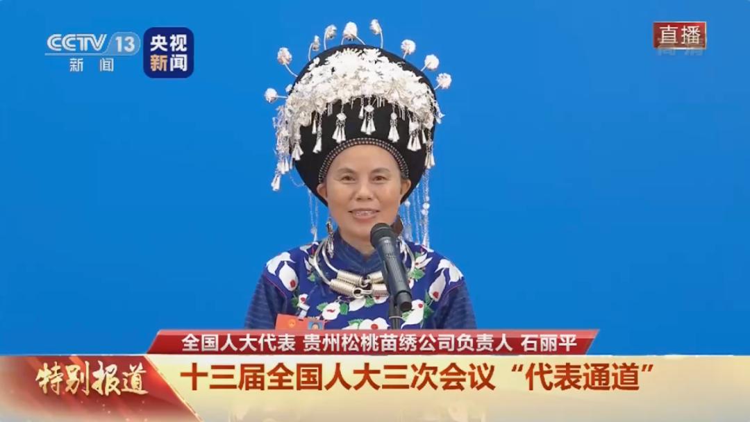 全国人大代表、贵州省梵净山松桃苗绣公司负责人石丽平,分享了自己带领大家脱贫致富的故事和感受。