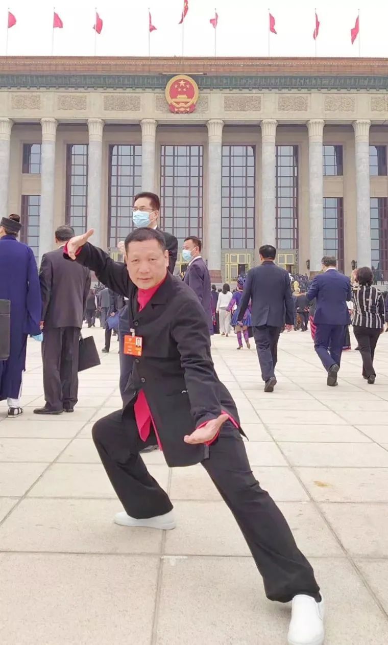 周建平委员人民大会堂外打太极:以国家力量推太极等武术进奥运