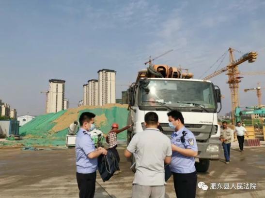 下午14时50分,10余名干警集结完毕,并引领岳麓区法院执行干警赶赴执行地点。到达执行现场后,经确认财产线索属实并立即核实情况,但被执行人并不在现场,肥东法院迅速找到工地负责人,与其交涉,慑于法律的威严,负责人十分配合执行工作,未发生过激、扰乱执行秩序的行为,整个执行现场也井然有序。最终,岳麓区法院在肥东法院所派执行干警、司法警察的全力协助下,顺利将被执行人的两辆重型车辆扣押。