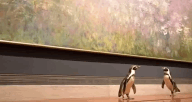 当位于密苏里州堪萨斯城(Kansas CIty)的阿特金斯艺术博物馆(Nelson-Atkins Museum)对人类关闭的期间,三只来自秘鲁和智利沿海地区的企鹅却获得了一次有私人向导陪伴的博物馆一日游。在这次有趣的尝试中,博物馆和动物园的专家们也可以观察到动物对不同艺术品有趣反应。经过一天的观察,博物馆的首席执行官在采访视频中说道:“这些企鹅对卡拉瓦乔(Caravaggio)反应似乎比莫奈(Monet)要好得多。