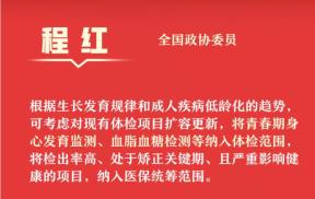 ▲全国政协委员程红:根据生长发育规律和成人疾病低龄化的趋势,可考虑对现有体检项目扩容更新,将青春期身心发育监测,血脂血糖检测等纳入体检范围,将检出率高、处于矫正关键期、且严重影响健康的项目纳入医保统筹范围。