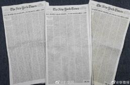 ▲截至北京时间5月25日16时,215个国家和地区累计确诊5385286例,全球新冠肺炎累计死亡344984例。其中,美国新冠肺炎病例超164万。美国新冠死亡人数正逼近10万。24日出版的《纽约时报》头版刊登了1000位逝者的姓名、年龄和职业等信息,密集的排版给人强烈的视觉震撼。