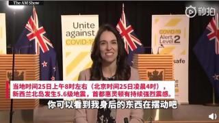 ▲当地时间25日上午8时左右,新西兰北岛发生5.6级地震,首都惠灵顿有持续强烈震感。不过,这并未打断总理阿德恩在国会蜂巢大厦接受电视直播采访。阿德恩在直播中说,“我们这里发生了一点地震,震感还挺强烈的,你们能看到我身后的东西都在移动。”不过,她很快就恢复了镇定,继续接受采访。