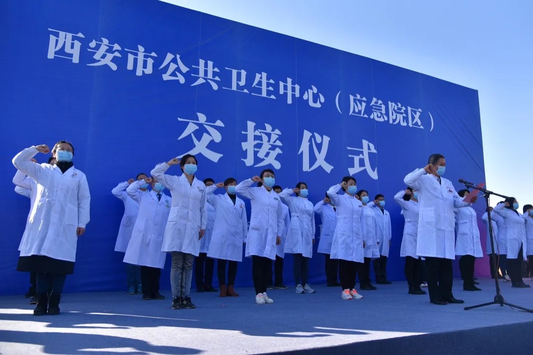 2月17日,医护人员在西安市公共卫生中心(应急院区)建成交接仪式上庄严宣誓。(资料图片)