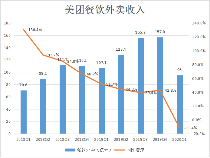 残酷的第一季度过去了,在A、T等互联网“大厂”相继公布了尚算不错的财报之后,于5月25日美团点评(下称:美团)对外发布了2020年第一季度财报。特殊时期下的这季财报,是“照妖镜”也是“炼金石”,既是某些企业彰显平台商业能力的证明,也是个别企业掩饰坏成绩的一块好“遮羞布”,看了很多份报喜的财报后,美团终于给了一份“另类”的答卷。根据美团财报数据显示,Q1季度营收为167.53亿元,同比减少12.6%,经营亏损为17.16亿元,同比增加31.6%;餐饮外卖收入同比减少11.4%,至人民币95亿元。以上数据看起来,在受到疫情影响下,似乎不算“十分”糟糕。可环比去看,就会发现美团问题有多严重。