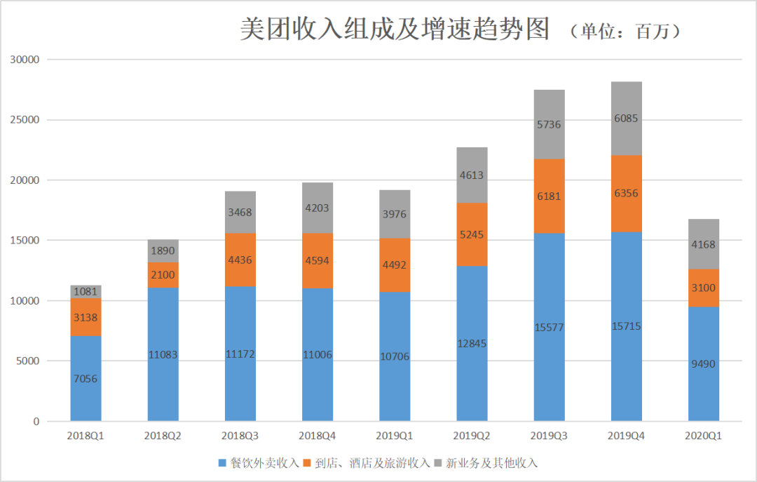 回过头看美团的财报,除了新业务及其他板块业务营收出现了小幅的增长,其他数据都很难看。疫情是“利空”因素,问题的根结则在美团的陈旧商业模式身上。以总营收来看,美团业务结构过于单一,致使自身抗击意外风险的能力极弱。从Q1收入来看,占到营收大头的餐饮外卖业务,到店、酒店及旅游业务,均出现不同程度下滑。