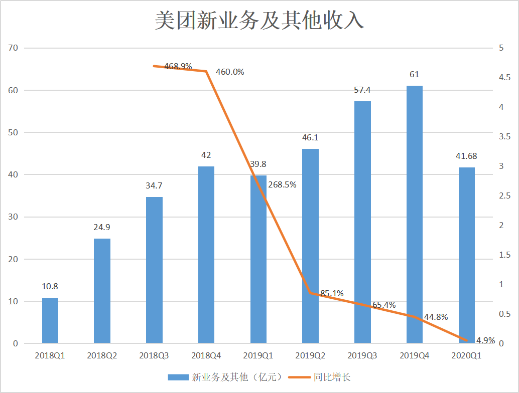 Q1美团新业务单车业务盈利能力不断改善,而新业务及其他板块业务一季度营收为41.68亿元,同比增长4.9%。经营利润-13.64亿元,同比下降47.2%。经营利润率由2019年第四季度的负值21.7% 扩大至2020年第一季度的负值32.7%。