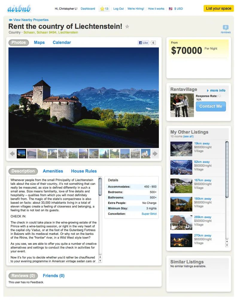 欧洲有个小国叫列支敦士登,在这里只要以每晚7万美元(折合人民币50万)的价格就能租下整个国家,起租两个晚上,就能成为该国的“临时国王”。